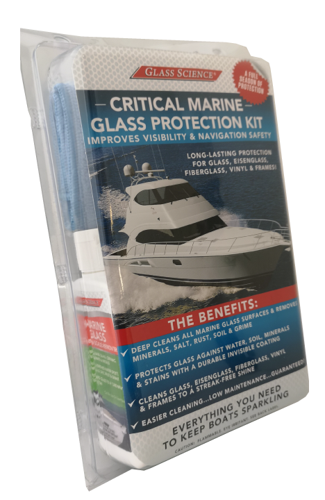 3 extraordinary products to Clean, Protect & Maintain all boat glass, eisenglass, plastics, polycarbonates & more. Maximizes Visibility in Poor Weather Conditions out on the Sea. Protects Against Damage-Chips, Pitting, Cracks & Fine Scratches Improves Clarity, Appearance and Reduces Night Glare, Reduces Soiling, Mineral & Salt Build-Up, Makes Cleaning Easier and Less Frequent. One Application Lasts All Season. Includes 4 oz Pre-Cleaner, 4 oz Protective Coating, 12 oz Surface Cleaner/Renewer with 2 microfibers for application
