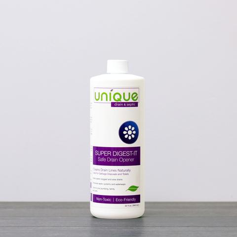 Super Digest-it ia a safe and natural drain cleaner that is guaranteed to open slow and clogged drains. Use it as a monthly maintainer to avoid drain back-ups and slow drains. Plus, it's safe for your toilets and garbage disposals and will enhance septic system waste remediation.