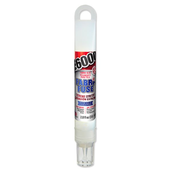 E6000 FABRI-FUSE® creates an exceptional bond for general fabric applications. Its extreme flexibility, stretch and recovery won’t create bumps or bulges on fabric and will allow fabric to remain flexible—even after washing. It bonds permanently, dries clear and is acid-free with almost no odor. E6000 Fabri-Fuse is so easy to use, it makes all your craft and hobby projects fun and unique. Machine washable and can be sewn through once dry!