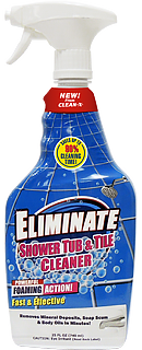 CLEANS everyday dirt, grime, scale, calcium, hard water spots, soap scum & body oils on showers, bathtubs, tile and sinks.EFFECTIVE on glass, fiberglass, clear plastics, ceramics, aluminum, stainless steel, brass, chrome, porcelain and cultured marble surfaces. The product is great for the entire bathroom. Eliminate has a unique and pleasant, fresh cherry scent and is user safe and environmentally friendly.