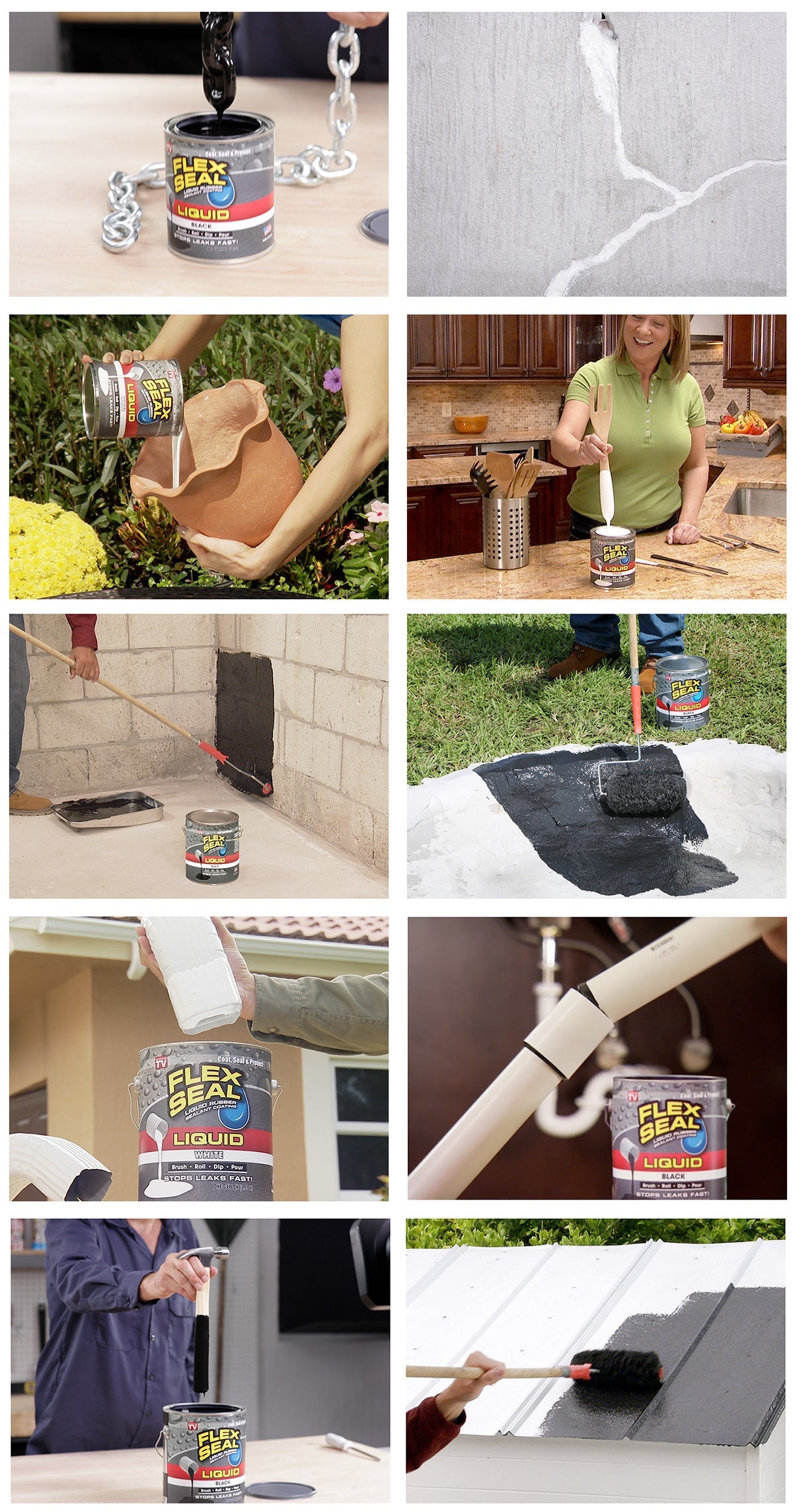 FLEX SEAL LIQUID ® is actually liquid rubberized coating in a can! Similar to our Flex Seal Spray, but now you can brush it, roll it, dip it or pour it anywhere you need a watertight, flexible coating or sealant. Our patent pending, proprietary formulation starts out as a thick liquid and dries to a super strong and flexible, watertight, rubberized coating that protects and helps stop leaks fast.
