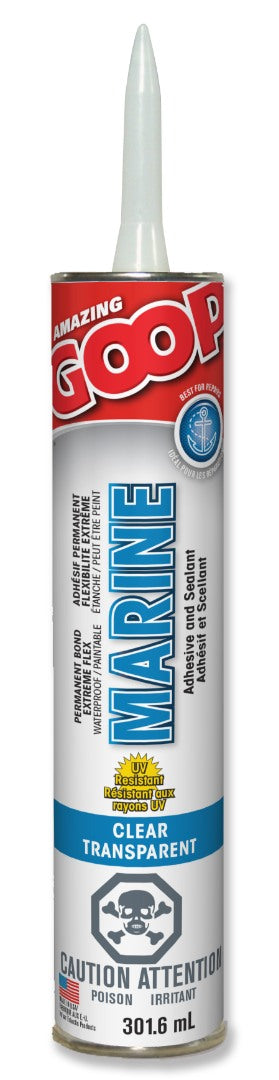 Marine Goop is waterproof, non shrinking and UV resistant. Formulated to repair, seal and stick to a wide variety of materials found in and around water. Excellent adhesion (even under water to fiberglass, metal, fabric, glass, wood, and more. Paintable.