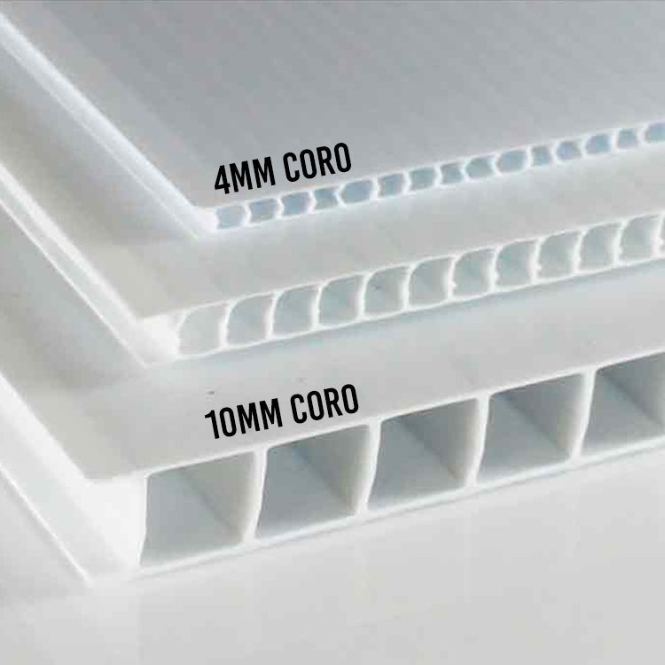 Hi-Core 10 MM White Corrugated Sheet is a strong fluted sheet suitable for larger Job Site boards up to 4'x 8'. they can also be paneled together for even larger signs