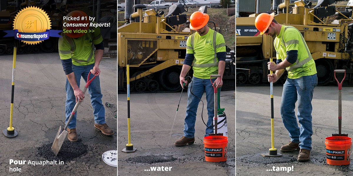 While other cold patch products claim durability and immediate set-up, if you have ever stepped in a utility cut while crossing the street that resembled a rocky sludge, you know the other products remain pliable far beyond application. On top of that, those fillers must eventually be replaced by permanent pavement materials. Only Aquaphalt sets-up fast and permanently for superior results. From potholes to manholes and utility cuts to driveways and tennis courts, in the world of asphalt and concrete, we have learned that stable base materials plus enduring binders equal unlimited potential for all of our customers.