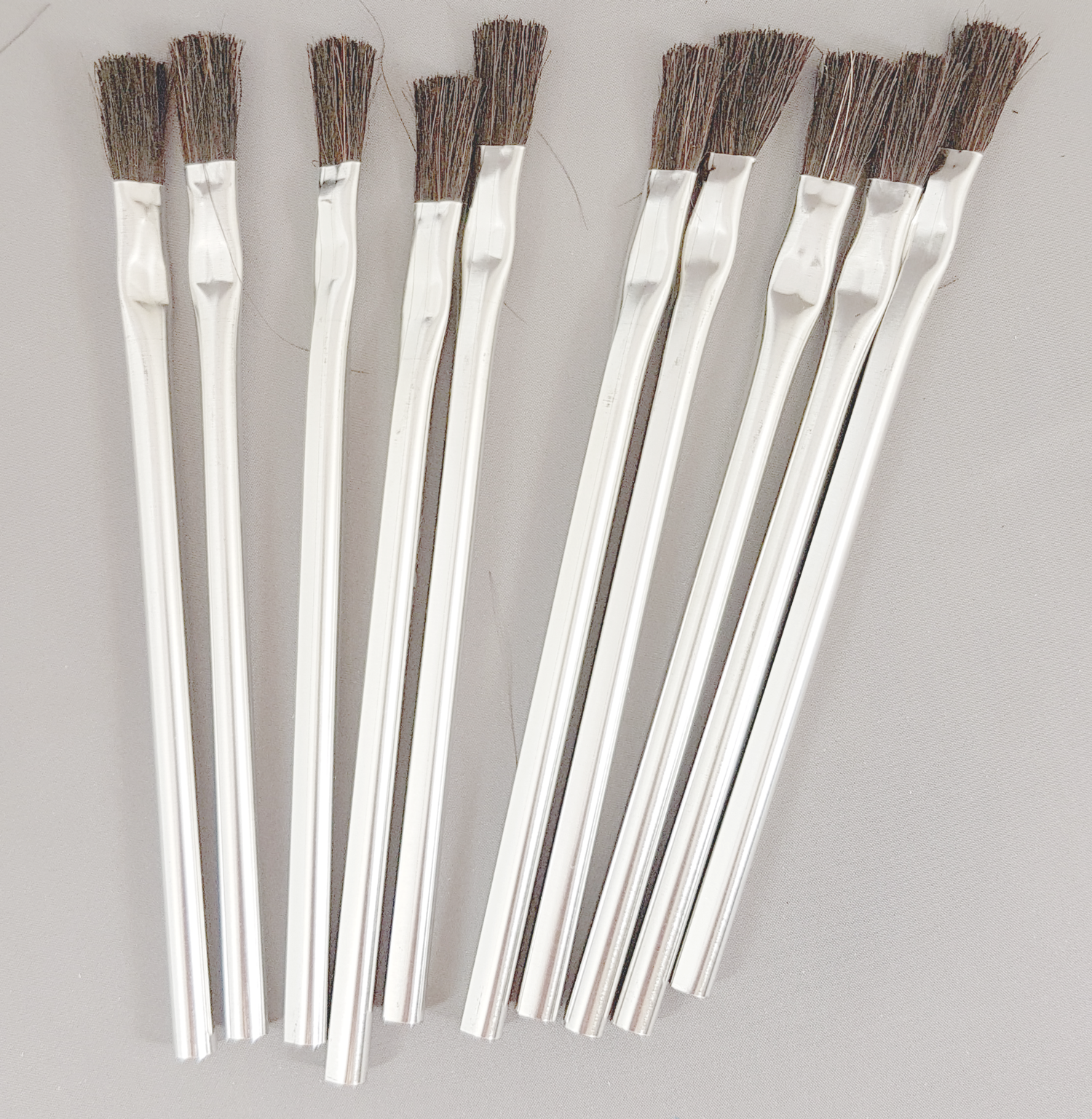 Commonly known as Acid Brushes, these small metal handled bristle brushes are always handy and great for all kinds of great uses. for the home, work bench, or any place of work.
