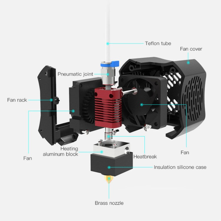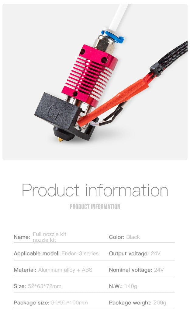 A fully assembled replacement hotend assembly for quick replacement/maintenance of your Ender-3 V2.