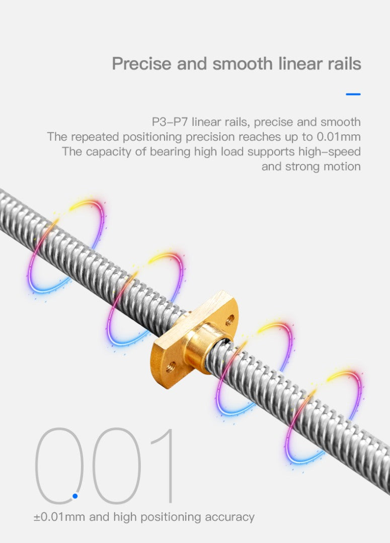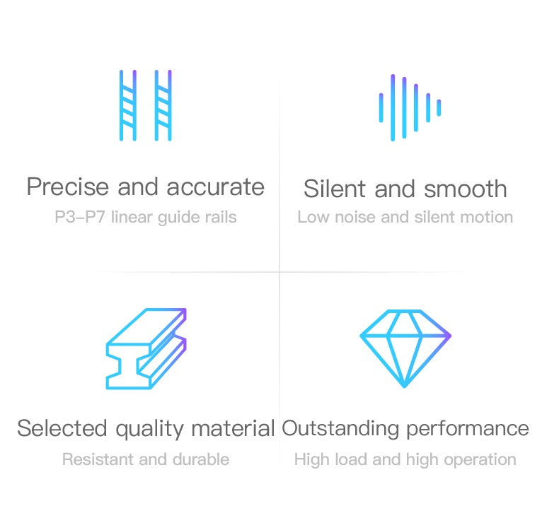 Precise and accurate P3-P7 linear guide rails, with low noise and silent motion.