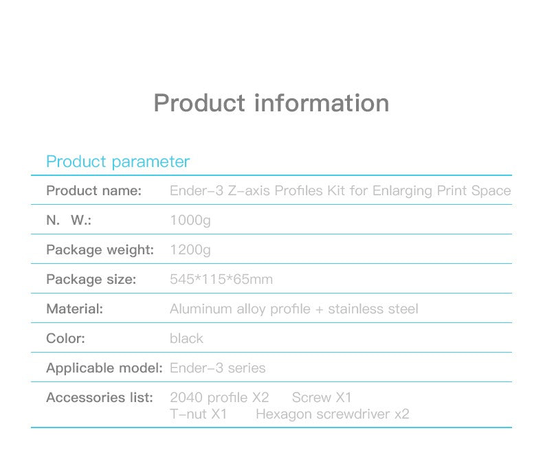 Extend the height of your Ender-3 printer with the handy pre-cut and painted extensions.