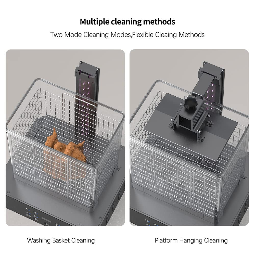 The Creality UW-02 Wash & Cure Station is a must have for all large resin printer owners! The UW-02 simplifies your curing process, and reduces the risk of spilt resin, by having an all-in-one setup. No need to fuss with multiple machines to achieve a beautifully cured print. The UW-02 is everything you loved about the UW-01 but with nearly double the size!