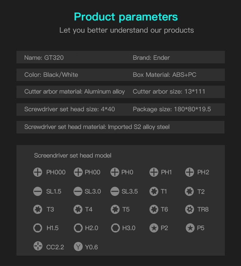 An Ender precision screwdriver kit by Creality for all the tasks requiring small and precise tools.