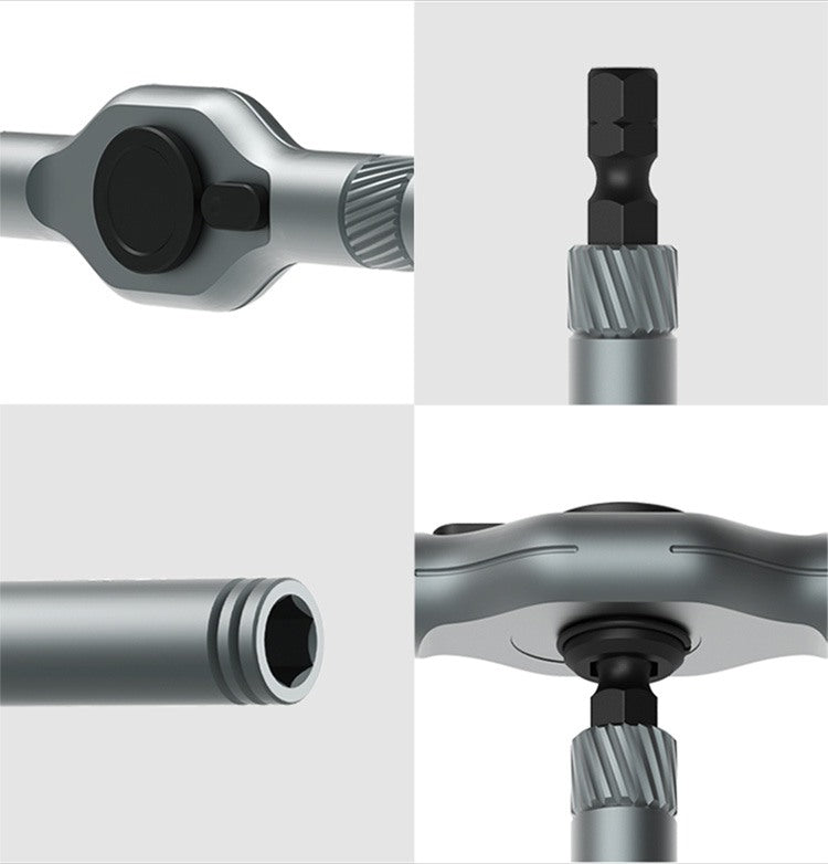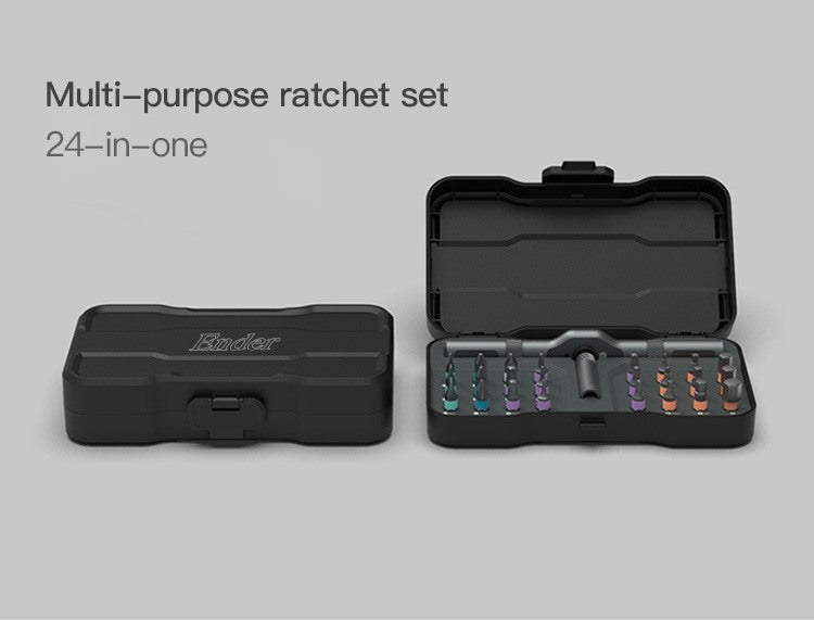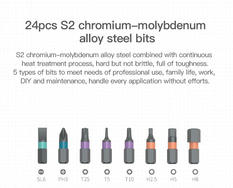 This ratchet set features a modular handle to help you get into those tight spaces regular ratchets just can't reach. 24 chromium-molybdenum alloy steel bits are included in the set.