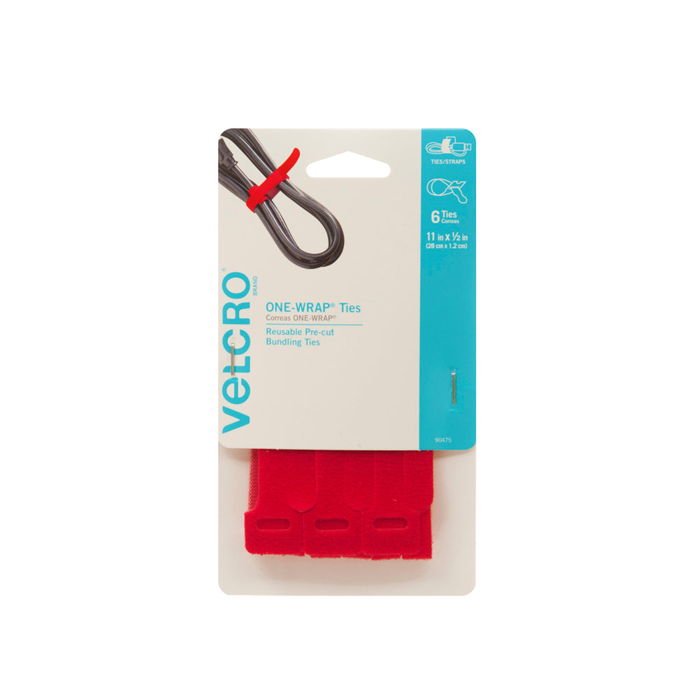 VELCRO® Brand ONE-WRAP® precut ties come in a variety of different colors to make it easy to color-code wires, cords, and cables for construction and networking projects. Available in different sizes to handle thin wires and bulky cables. Adjustable ONE-WRAP® ties are strong and reusable for indoor or outdoor use.