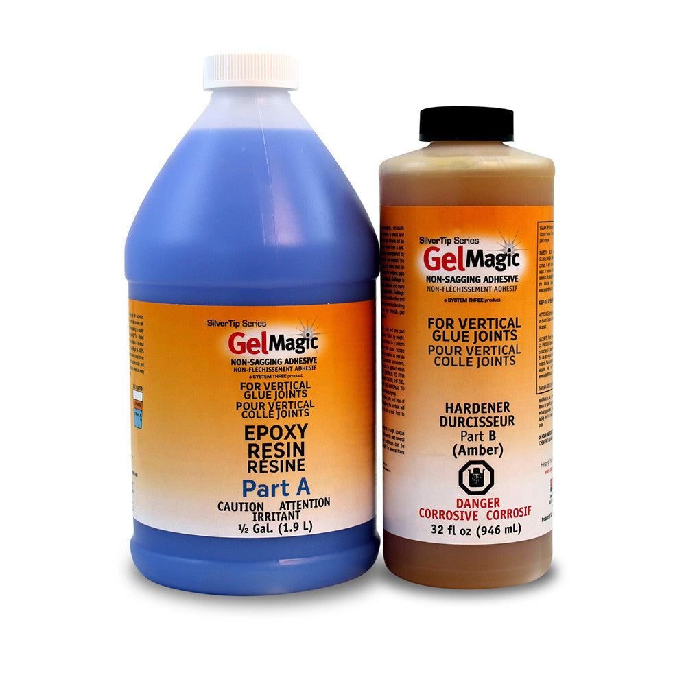 GelMagic is a toughened, non-sagging, two component, structural epoxy adhesive designed for superior bonding to wood and most porous materials. It is unique in that it starts as two self-leveling liquids, which form a soft, thixotropic, sag-resistant paste when mixed. Measuring is easily accomplished by either volume or weight. GelMagic requires no additional modification with fillers and can be applied to vertical and overhead surfaces without running, eliminating the mess and waste associated with other epoxies. GelMagic exhibits exceptionally high peel strength and employs a state of the art, two-phase epoxy morphology, which creates an adhesive bond that is tougher, more resistant to embrittlement and has better elevated temperature properties than other room temperature cured epoxy adhesives. GelMagic can be post-cured up to 140ºF for even greater performance. Two hardeners are available: Regular and Slow (for extra-long working time). See the Technical Data Sheet (link to TDS) for more detailed information.
